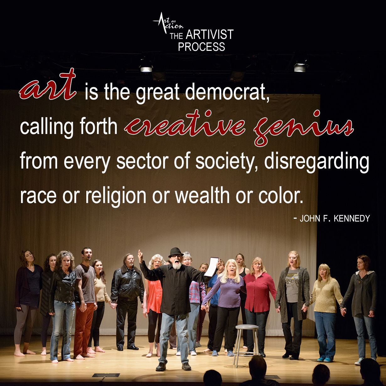 The Artivist Process is the method of discovering, cultivating and supporting everyone’s inner artist in a collaborative environment.